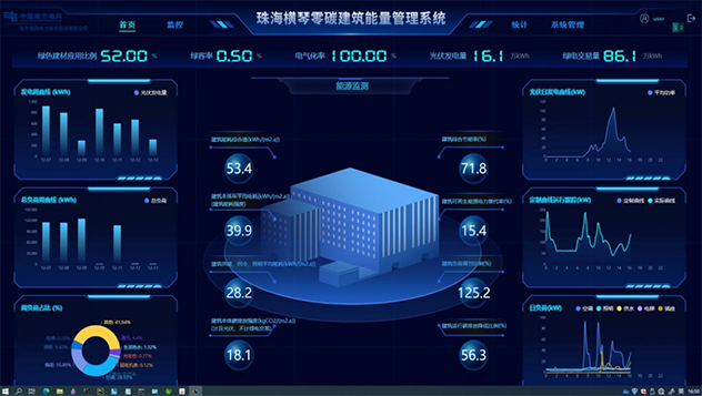 南方电网珠海横琴供电局线路工区零碳大楼项目于2023年4月投产,为南方电网公司首个中型“零碳”建筑,获得了全国首个“碳中和”建筑金级评价标识证书。该建筑具备极低能耗运行、高能效高灵活调控、全零碳能源的特征。